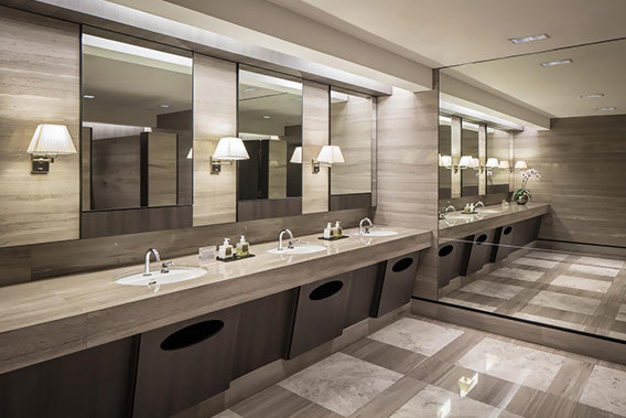 Создали санузел для ресторана европейской кухни с учетом фирменного стиля. Настроили сантехнику, сделали ремонт и оформили помещение.